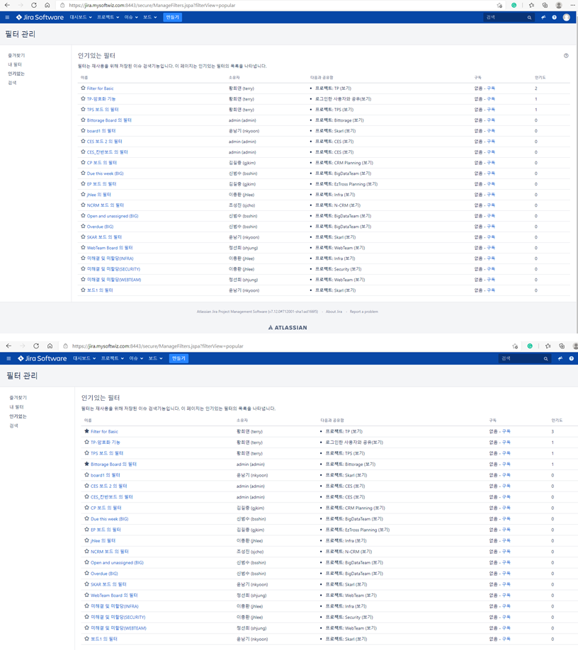 필터(Filter): 저장된 이슈 검색 기능으로, 저장된 검색 조건을 다시 사용하는 것을 목적으로 함