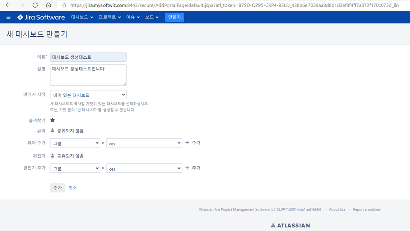 2)대시보드 이름, 설명 등을 기입 후 "추가"클릭시 새 대시보드 만들기 완료