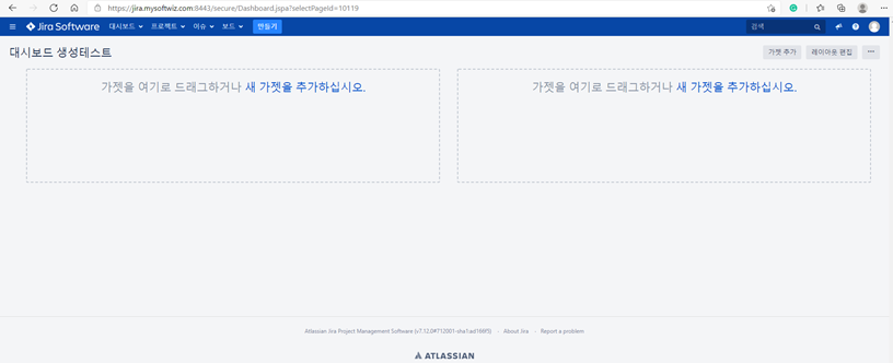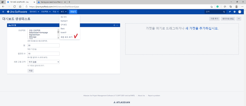 4)특정 대시보드(위 그림의 "대시보드 생성테스트") 클릭시, 해당 대시보드의 가젯을 추가할수 있음