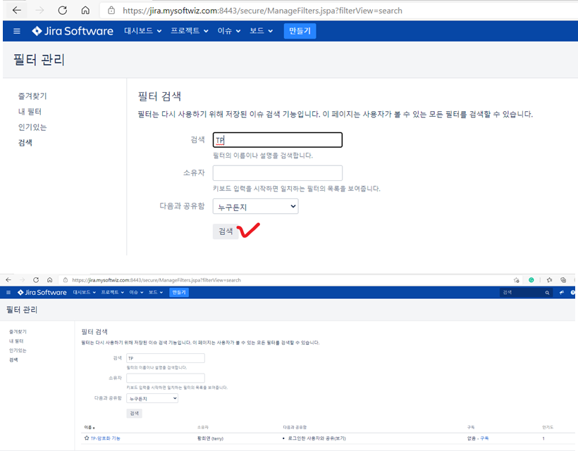 필터(Filter): 저장된 이슈 검색 기능으로, 저장된 검색 조건을 다시 사용하는 것을 목적으로 함