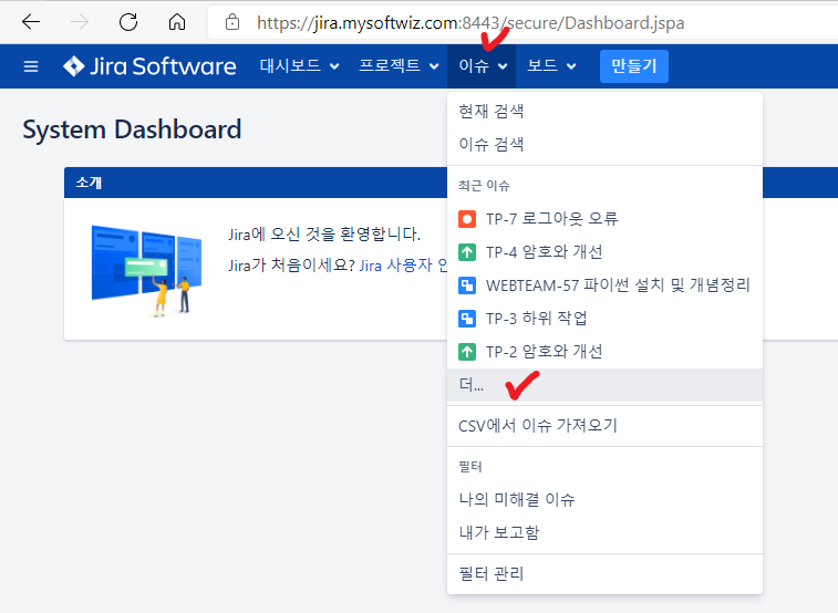 1)"만들기"탭을 통해 이슈 생성