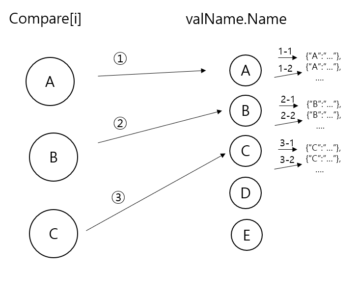 코드를 이해하는데 도움이 될 것 같아 그림으로 다시 설명을 해보자면 먼저 필수 필드값 'A'가 valName.Name의