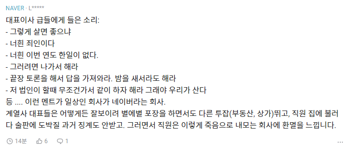 네이버 직원 메모 남기고 극단 선택···"상사 갑질" 글 확산