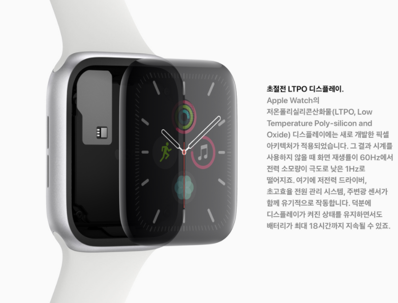 여기서 LTPO란 TFT공정에서 하나의 트랜지스터를 Oxide(산화물)로 변경하여, 전자이동도는 낮지만 누설전류가 없도록 이중설계한 디스플레이를 의미합니다.