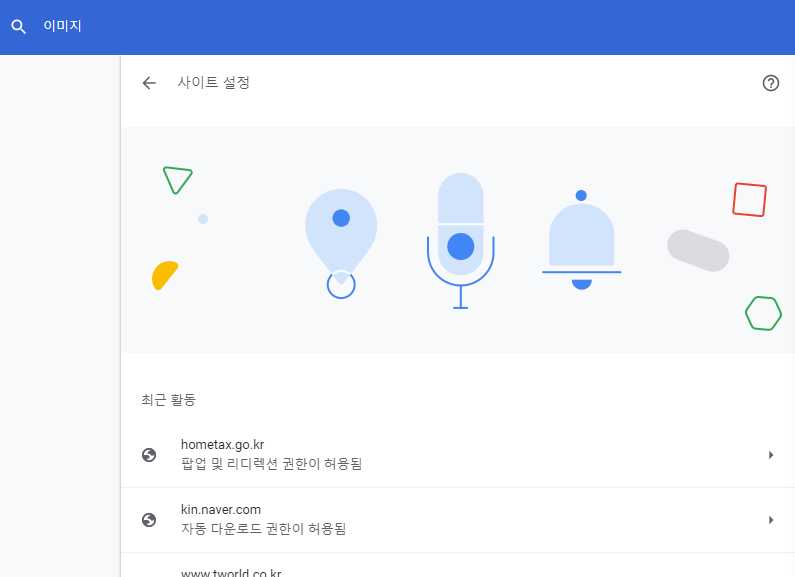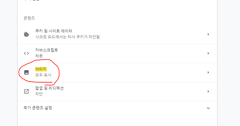 그래서 했었던 일들은 먼저 크롬 설정에 진입하여 검색창에 '이미지'를 검색하면