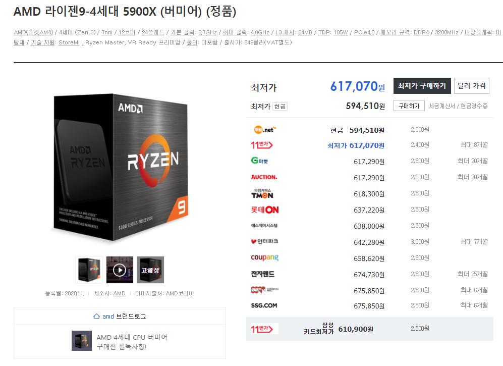 이 곳을 보면 5600X는 가격 변동 폭이 크게 없는데 특히 5900X가 상당히 변동의 폭이 커진 것을 알 수 있네요.
