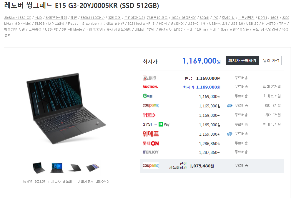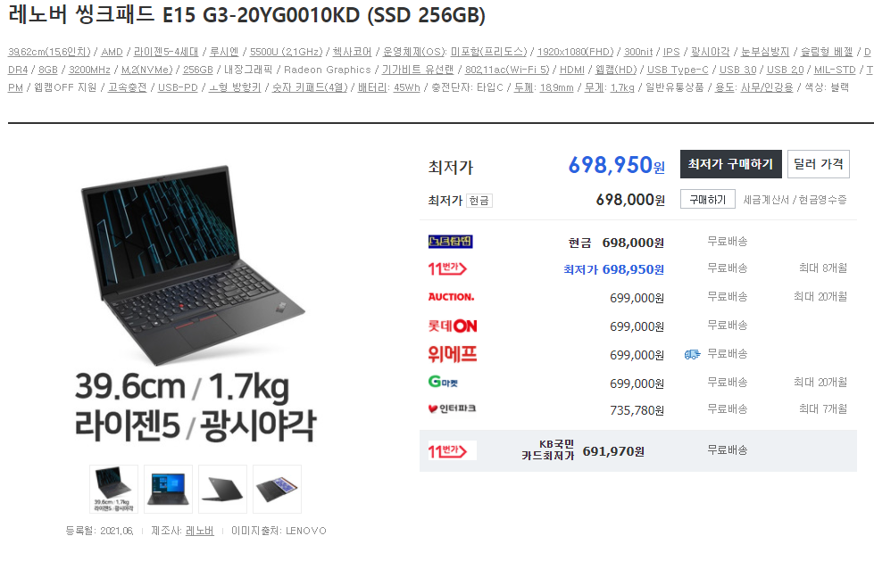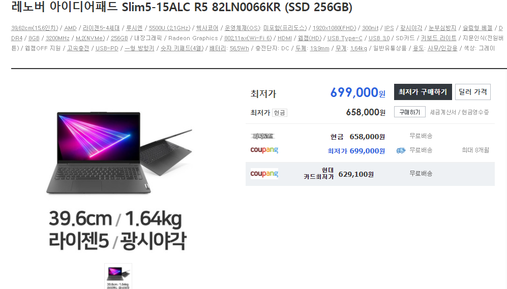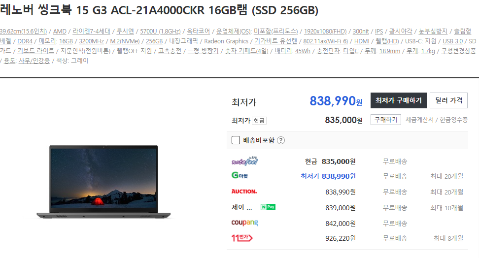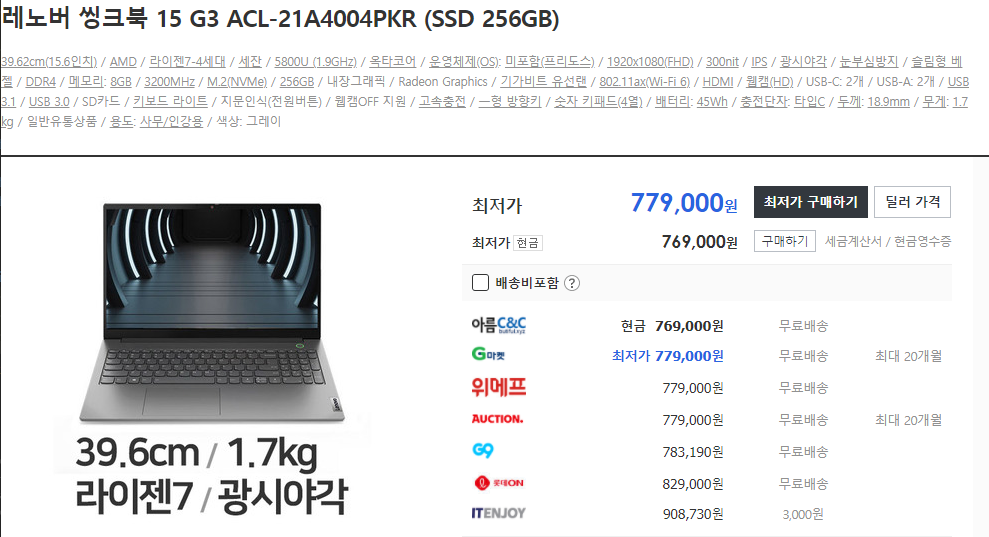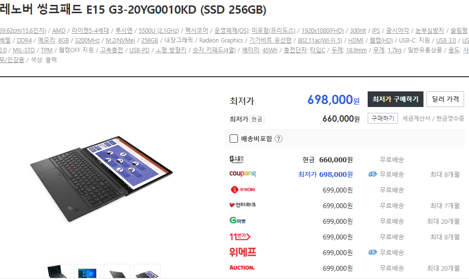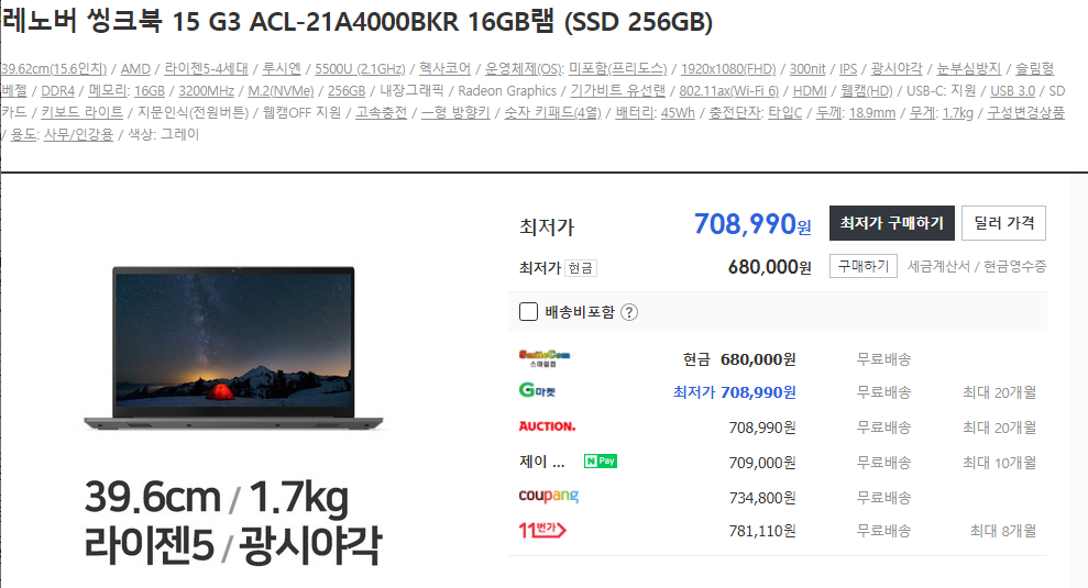 재고가 없다는 점입니다... 5850U, 15.6, 400nis 512GB인데 100초반이면 인기 많을 수밖에 없을거 같네요..