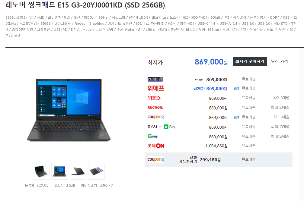 개인적으로 80만원대에선 5800U 모델이 들어간 싱크패드가 압도적으로 좋지 않을까 생각합니다.