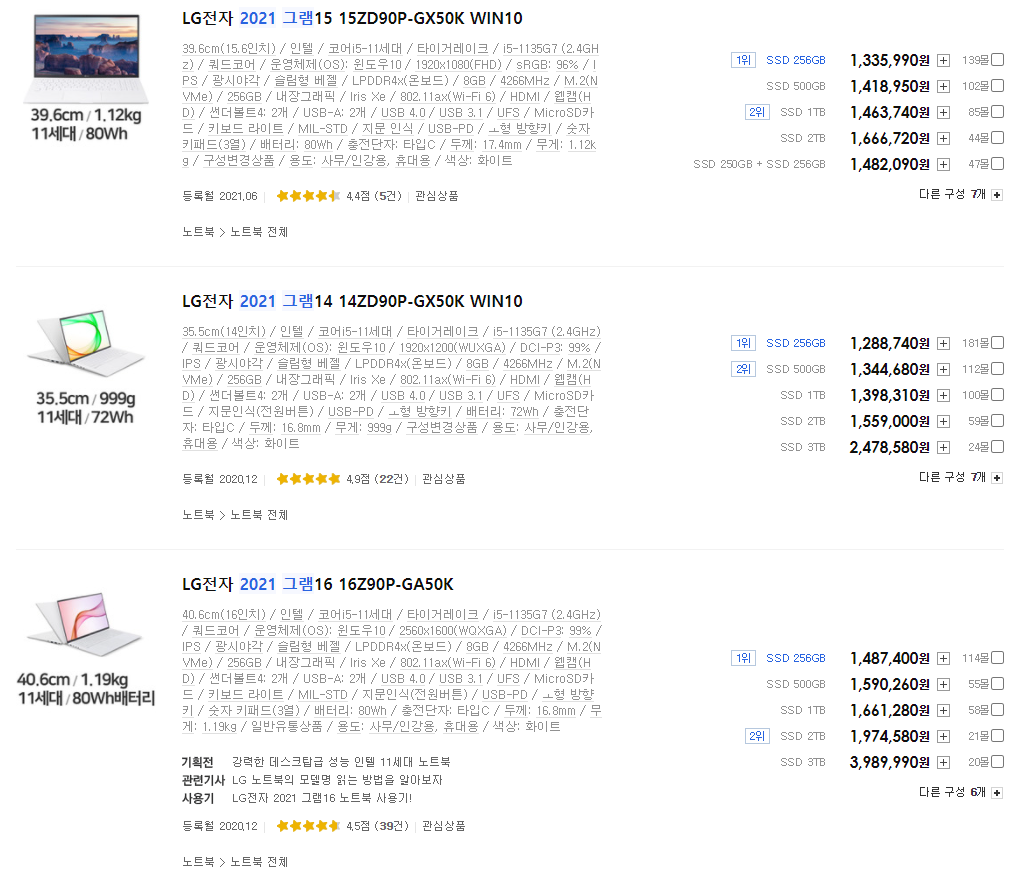 그 다음 엘지인데요. 엘지하면 역시 그램이죠. 그램의 장점이라하면 가벼운데, 배터리 용량도 크고, 다양한 크기의 디스플레이를 가지고 있다는데 있어요. 특히 17인치 노트북을 사용할 때 그 진가가 발휘된다고 생각해요.