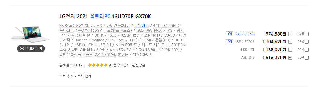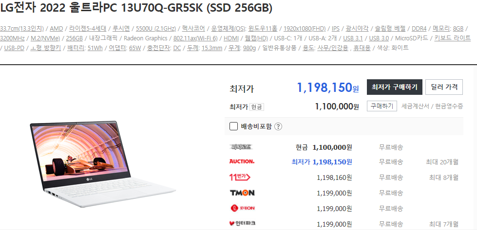 번외로 엘지에선 보급형 노트북으로 울트라 PC 라는 모델도 있는데요. 특징이라 하면 라이젠 CPU를 쓴다는 점입니다.