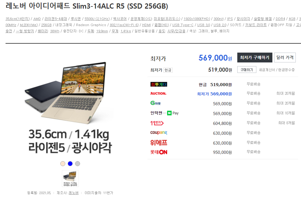 AMD의 5세대 CPU인 세잔, 루시엔(저전력)가 출시 되었기 때문에 개인적으로 인텔 10세대 CPU와 AMD의 르누아르 CPU가 탑재된 노트북은 구매하지 않으시는 것을 추천드립니다.