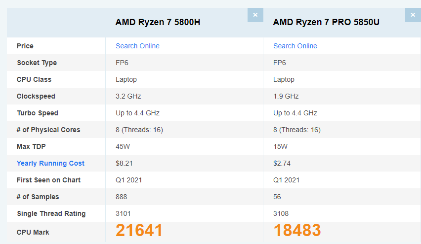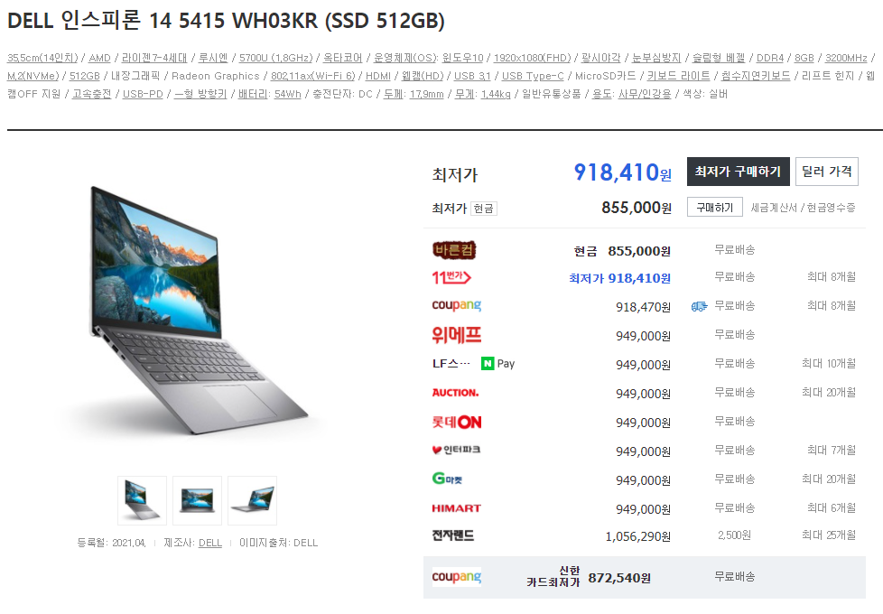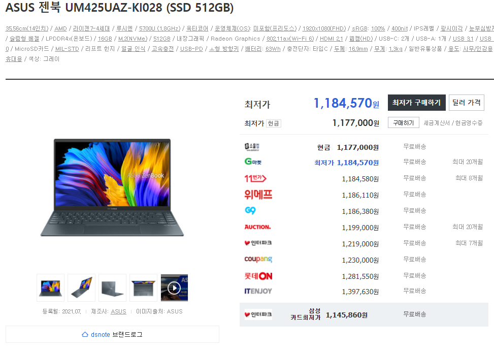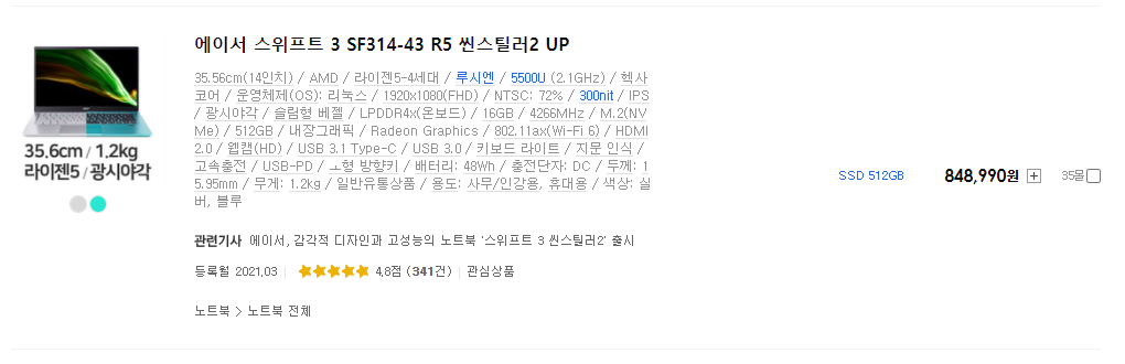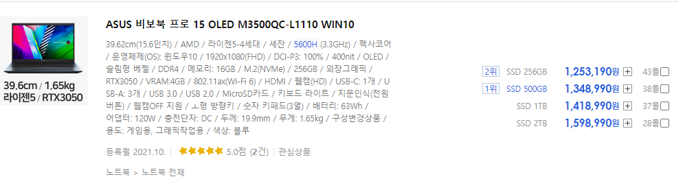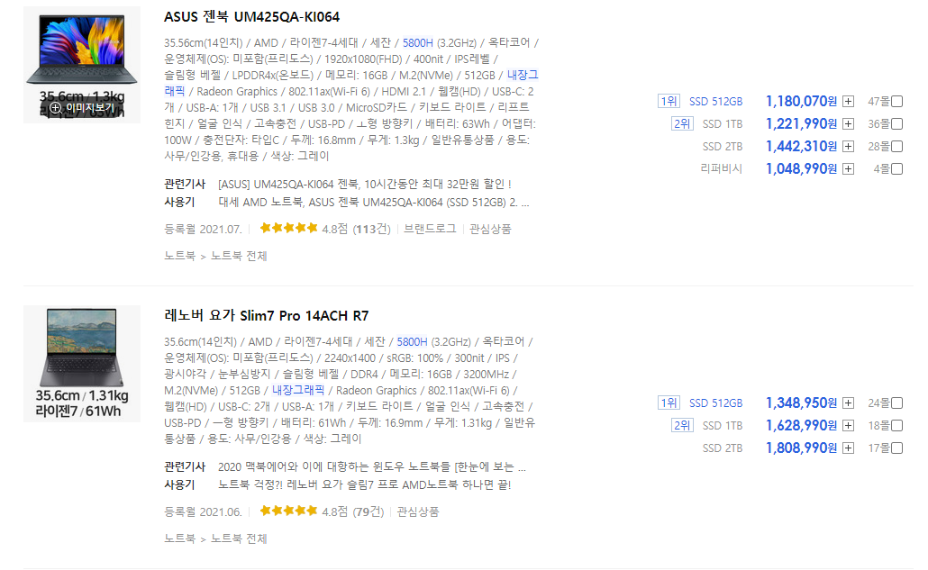 여기서부턴 5850U CPU가 탑재된 노트북이 압도적으로 좋습니다.