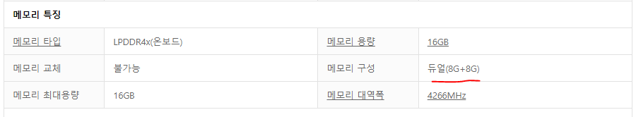 듀얼채널 메모리를 사용하고 있거든요. (다만 온보드 형식이라 메모리 증축은 힘듭니다.)