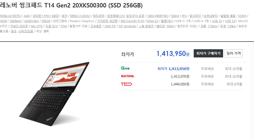 그래서 현 시점에서는 씽크패드 T14 모델을 구매하시는걸 추천드립니다.