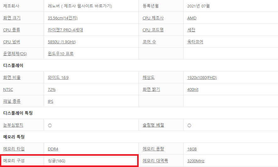 하지만 5850u CPU가 탑재된 위 사양의 노트북을 추천드리기가 상당히 찝찝한 이유는