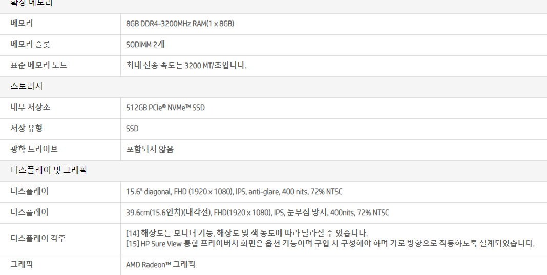 자! 그래서 해외 모델 부터는 AMD CPU가 탑재된 모델들이 대거 등장하기 때문에 웬만하면 AMD CPU가 탑재된 모델을 보시는 것을 추천드립니다.