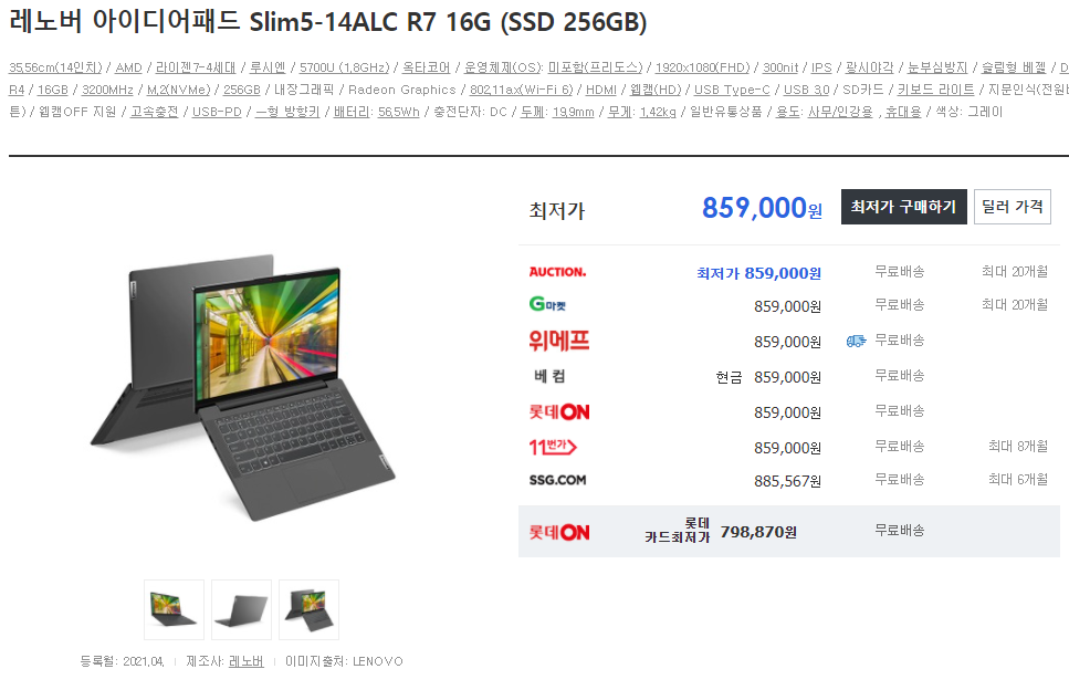 물론 품질을 장담할 수 없지만 대학생분들 가볍고, 싸게 들고 다니실 분들에게 강력 추천드립니다. 특히 아이디어패드, 씽크북이 그 예입니다.