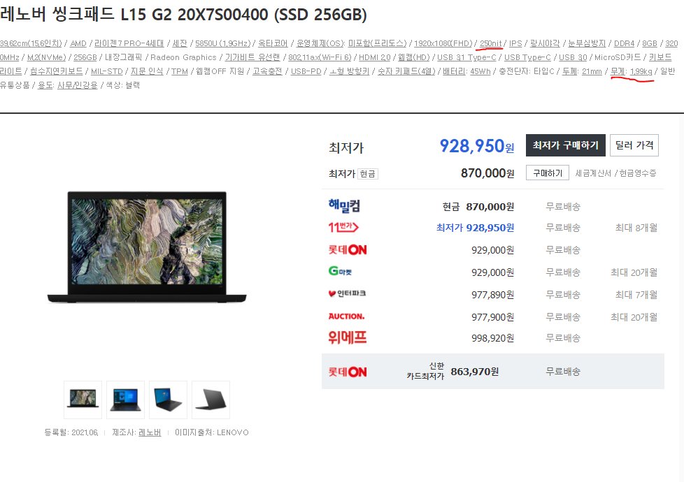 그 외에도 5850u CPU가 탑재된 노트북 중에 씽크패드 L시리즈가 있지만