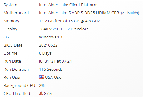 또한 Userbench에서는 인텔 데스크탑 12세대 i9 프로세서로 추측되는 16C 24T의 인텔 ES 프로세서 벤치마크가 등록되었습니다.