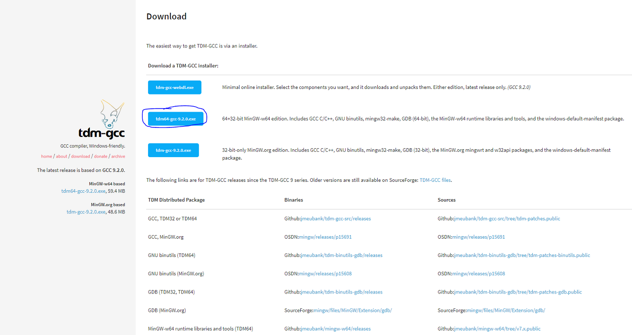 여기까지의 이야기를 요약하면 여기에서 tdm-gcc를 다운 받아야 한다는 것입니다.