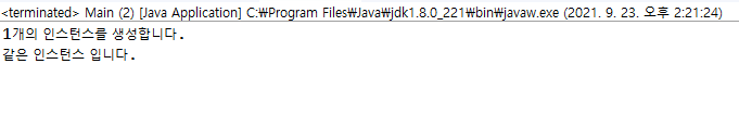 System.out.println("같은 인스턴스 입니다.");