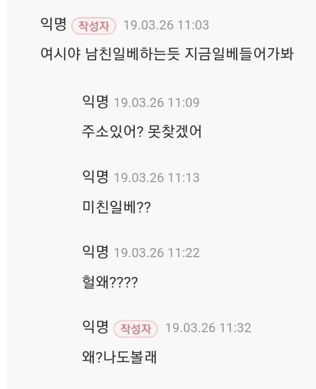 원래 익명글에 댓글달면 작성자인지 누군지 알수가 없었는데