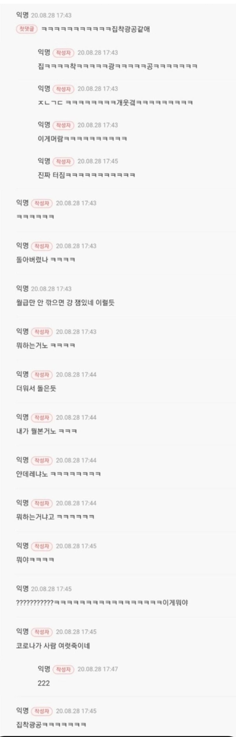원래 익명글에 댓글달면 작성자인지 누군지 알수가 없었는데