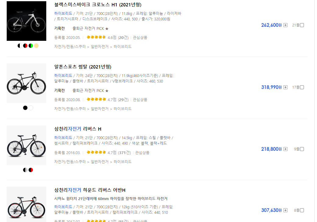 이런식으로 가격대 괜찮은 자전거가 많지만 187cm라는 제 큰키에 타기에는 작은 자전거들 뿐이더라구요..