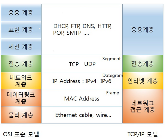 여기에 베이스가 되는게 IP라는 프로토콜이 있어요. 이것이 하위 계층이고, TCP, UDP가 상위 계층입니다.