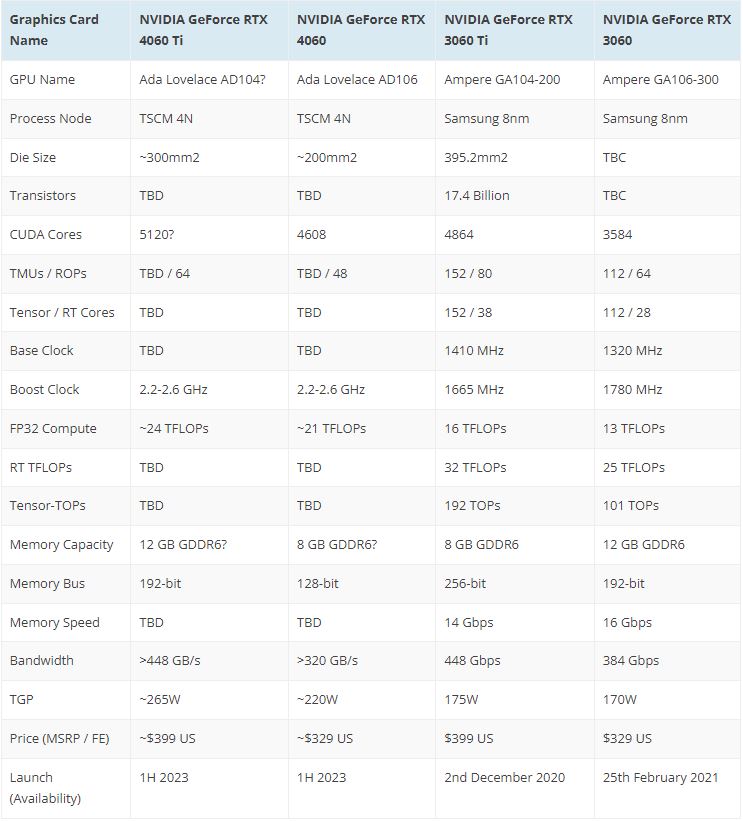 NVIDIA GeForce RTX 4060 시리즈 예비 사양: