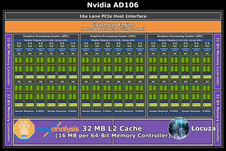 NVIDIA AD106 'Ada Lovelace' 게임용 GPU 블록 다이어그램 목업(이미지 제공: SemiAnalysis):