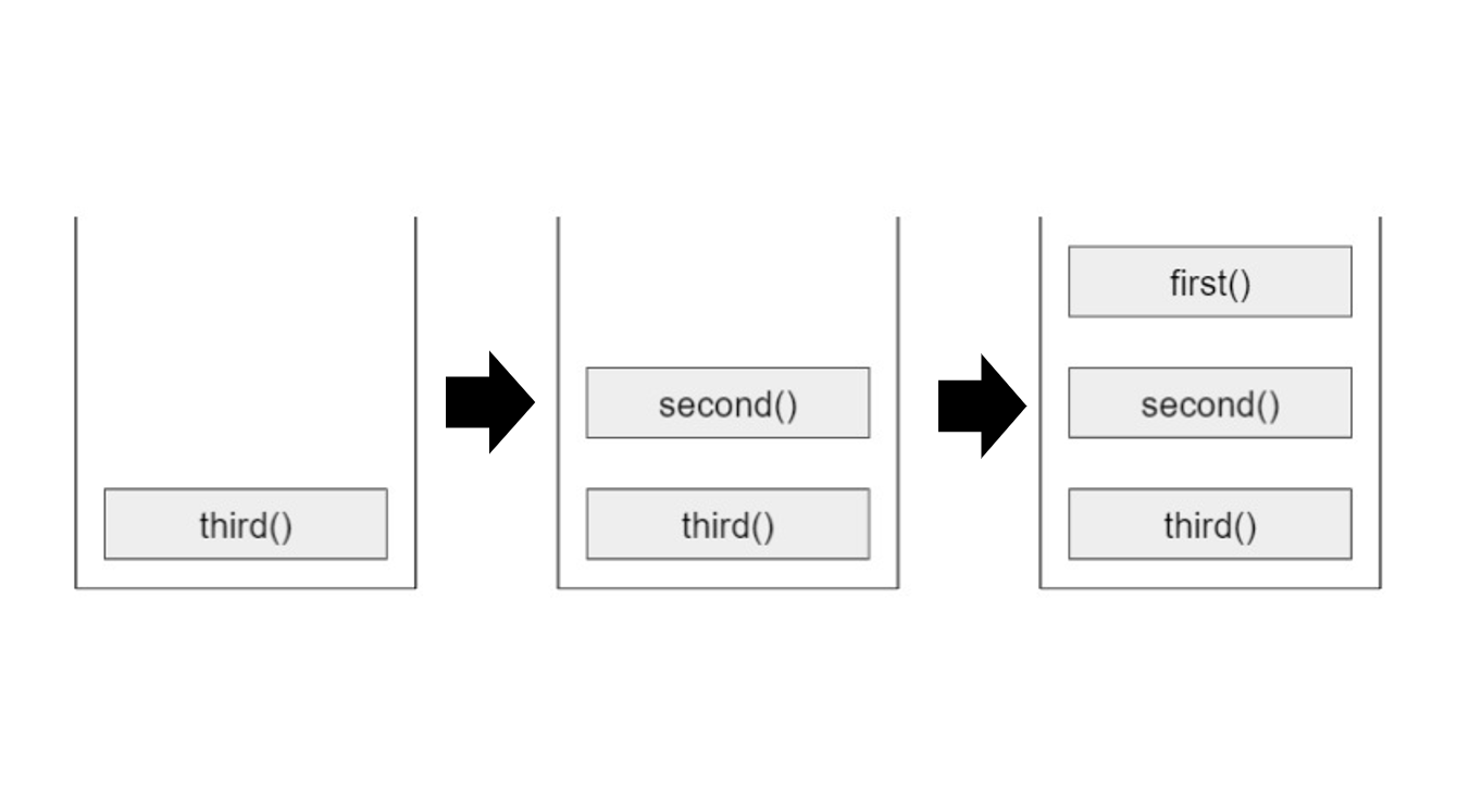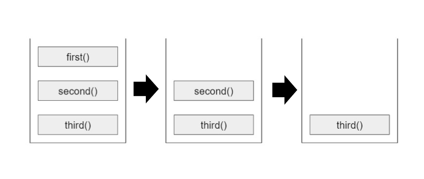 위의 코드가 실질적으로 콜스택에 쌓이고 나가는 과정은 아래와 같습니다.