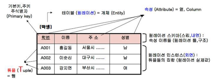 - 가장 많이 사용되고 있는 db의 한 종류 (고전적 데이터 베이스)