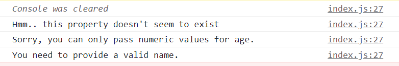 console.log(`Sorry, you can only pass numeric values for age.`)