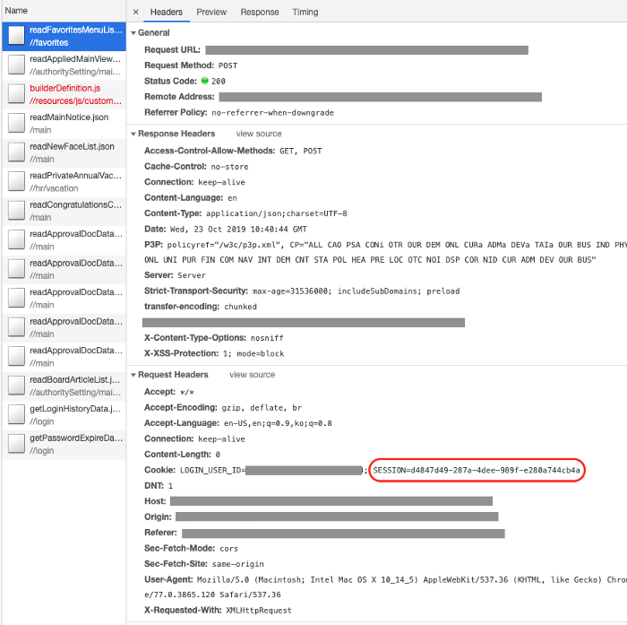 5. 서버에서는 요청헤더의 sessionid 값을 저장된 세션저장소에서 찾아보고 유효한지 확인후 요청을 처리하고 응답합니다.