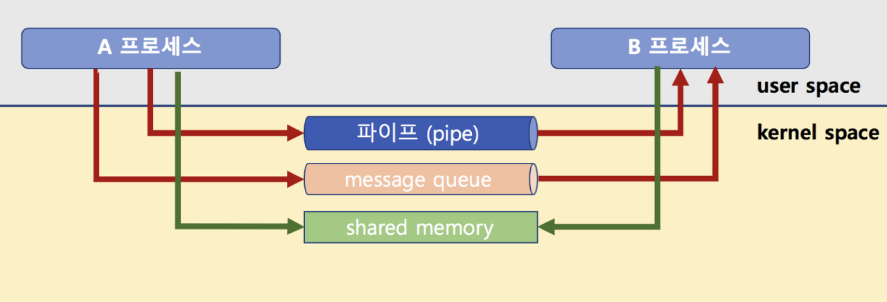 프로세스 간에 통신하여 프로세스 간에 데이터를 주고받는 방식을 말합니다.