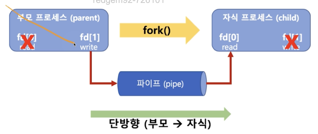 단방향 통신, 즉 부모 프로세스 자식 프로세스에게 일방적으로 통신하는 기법이에요.