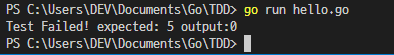 TDD니까 처음부터 테스트를 시켜줍니다. hello.go