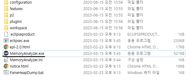 여기에서 MemoryAnalyzer.exe를 실행한 뒤 화면 하단에 보이는 Open a Heap Dump 부분을 클릭해줍니다.