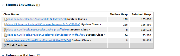 Biggest Instances라는 항목이 나오는데 어떤 항목이 힙 메모리를 가장 많이 차지하는지 보여주는 부분이에요.