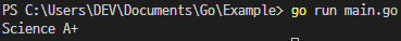 var s Student = Student{name: "Chulsu", age: 23, class: "Science", grade: "A+"}
