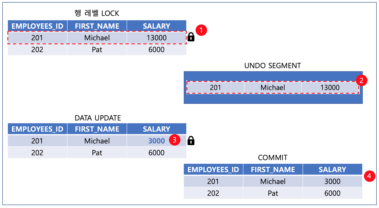 트랜잭션에서 UPDATE작업을 할 때 처리과정은 아래와 습니다.