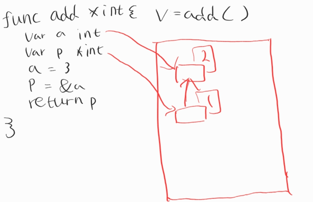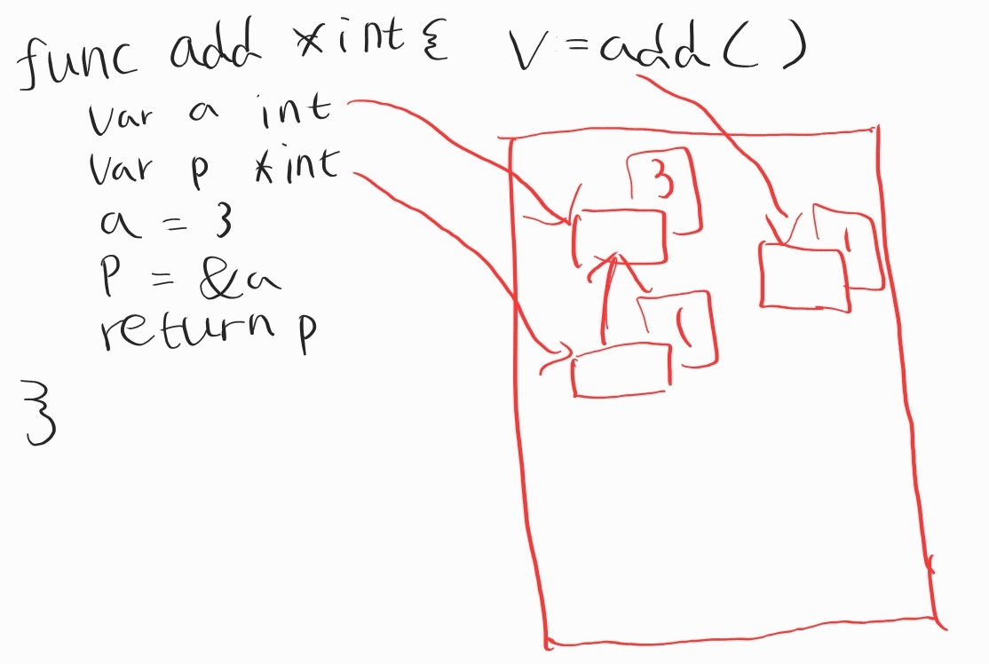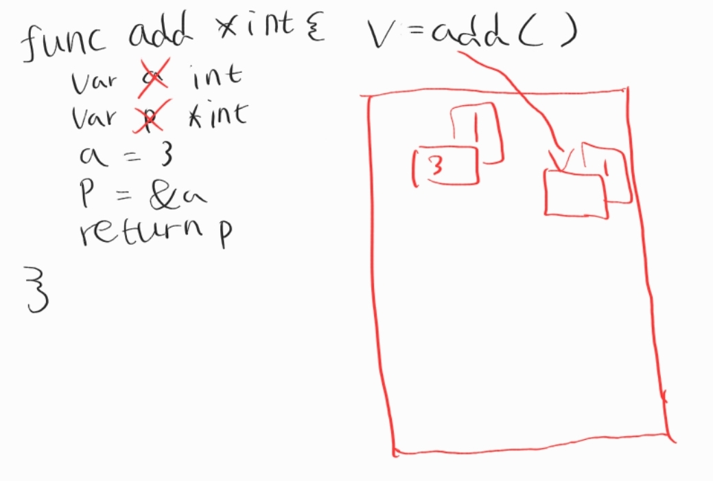 그러면 v라는 변수가 메모리에 생기게 될 것이고, 이 것이 add()의 결과 값인 p를 가지고 있으니까 p값이 복사가 돼서 결론적으로 v가 a의 주소값을 가리키게 되고