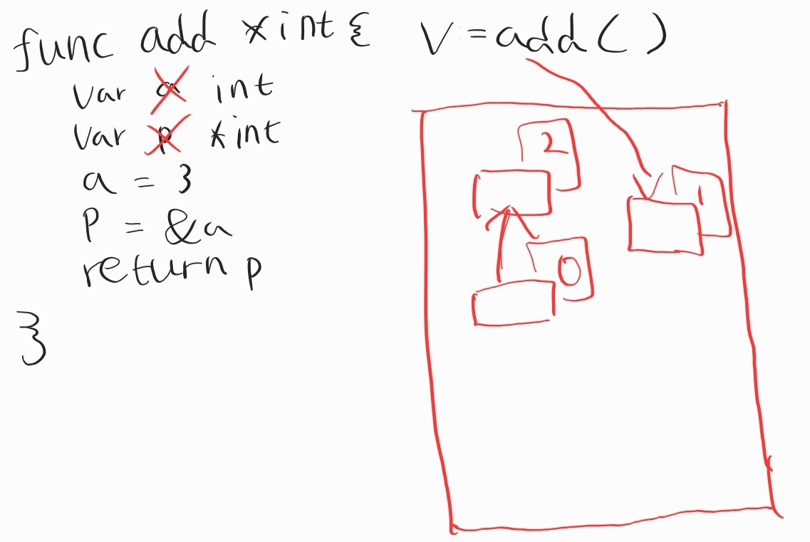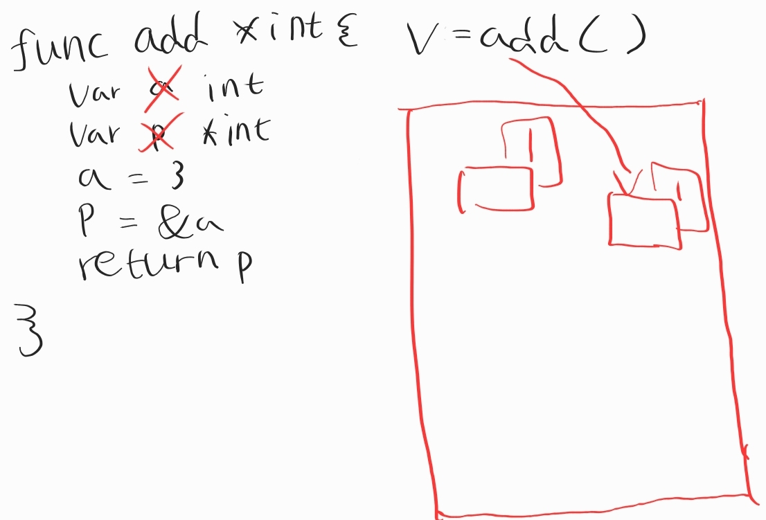 그래서 v도 1, a도 1이 되는데 리턴되는 순간에 바로 없어지는 것이 아니고, v := add()까지 끝나고 난 다음에 사라진다고 보면 됩니다.