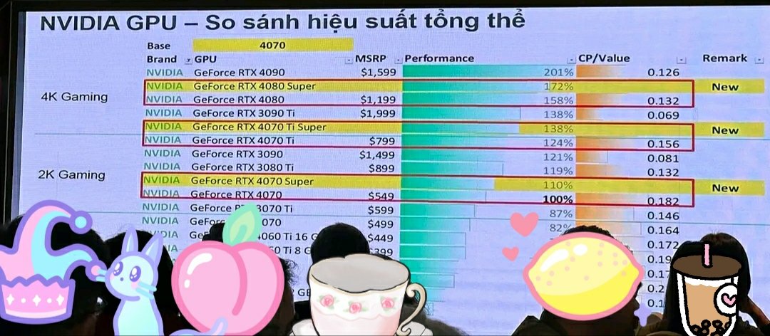 베트남의 소매업체를 대상으로 한 프레젠테이션에서 NVIDIA의 GeForce RTX 40 SUPER GPU 성능 및 가치 수치가 발표되었습니다.
