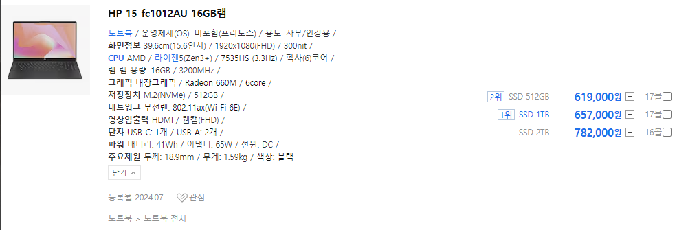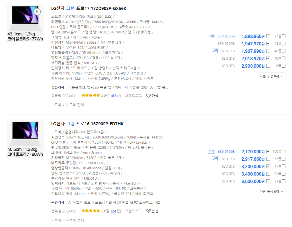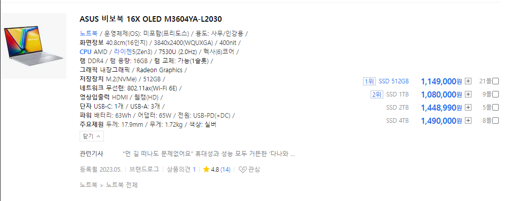 이제 각 CPU별 노트북 추천 들어갑니다.