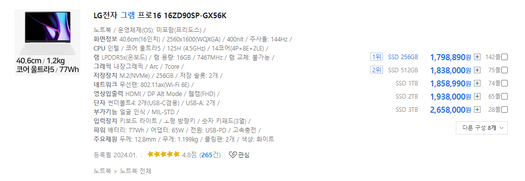여전히 그램의 가격 높네요.