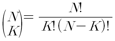 이항 계수는 주어진 두 수 𝑁과 𝐾에 대해, 𝑁개의 원소 중 𝐾개를 선택하는 방법의 수를 나타냅니다.