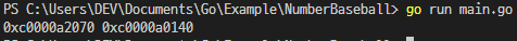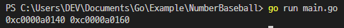 fmt.Printf("%p %p\n", a, b)