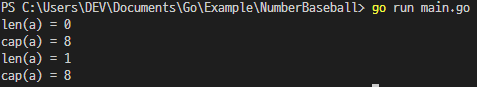 그러면 이렇게 비어있는 동적배열(Go에선 Slice이므로 Slice라고 하겠습니다.)을 만들면 길이는 0이고, Capacity도 0입니다.